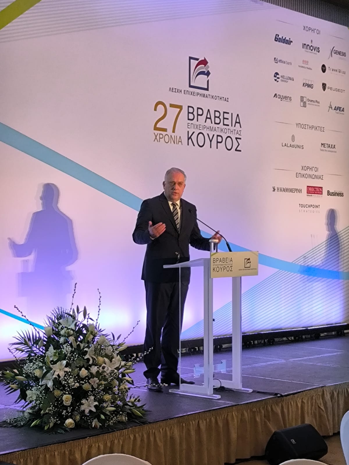 Στην απονομή των Βραβείων Επιχειρηματικότητας “Κούρος 2024” εκπροσωπώντας τον Πρωθυπουργό, Κυριάκο Μητσοτάκη.
