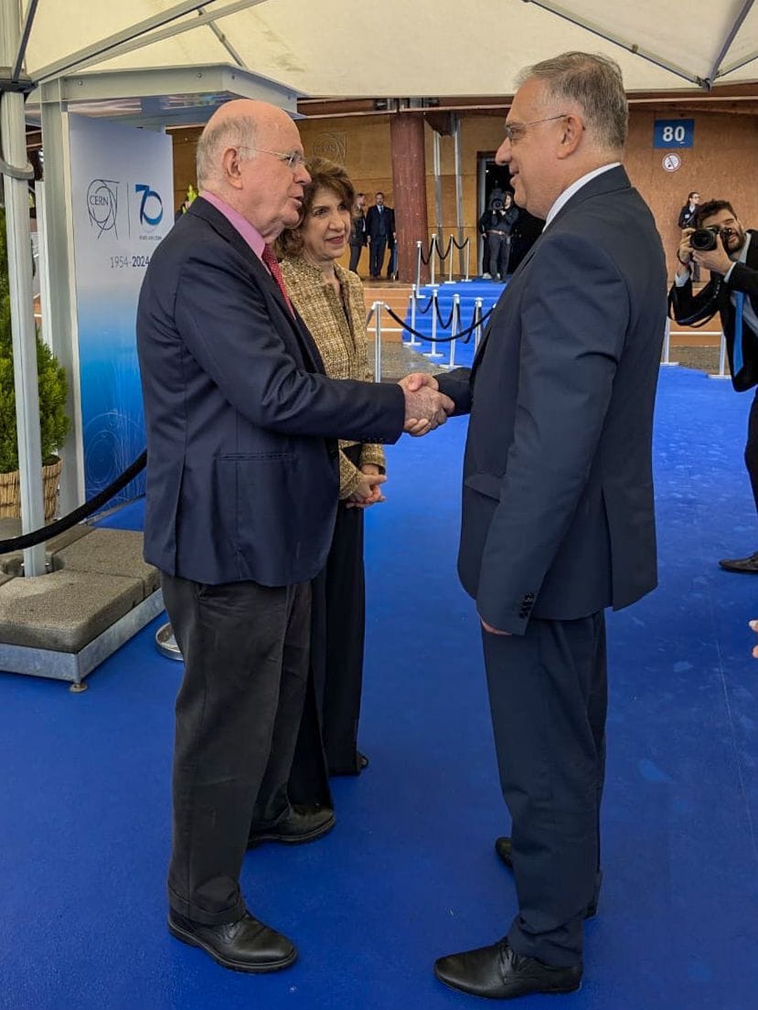 Συναντηθήκαμε με τον νέο πρόεδρο του CERN Κωνσταντίνο Φουντά και με τον πρέσβη μας Ιωάννη Γκίκα και περιηγηθήκαμε στις εγκαταστάσεις. Η Ελλάδα συμμετέχει στο πείραμα και στηρίζει το CERN ως ιδρυτικό μέλος. Συνολικά 200 Έλληνες εργάζονται και μετέχουν από διάφορες επιστημονικές ιδιότητες, ενώ συνδράμουμε με 12 εκατ. ευρώ που καταβάλλονται από την Γενική Γραμματεία Έρευνας και Καινοτομίας.