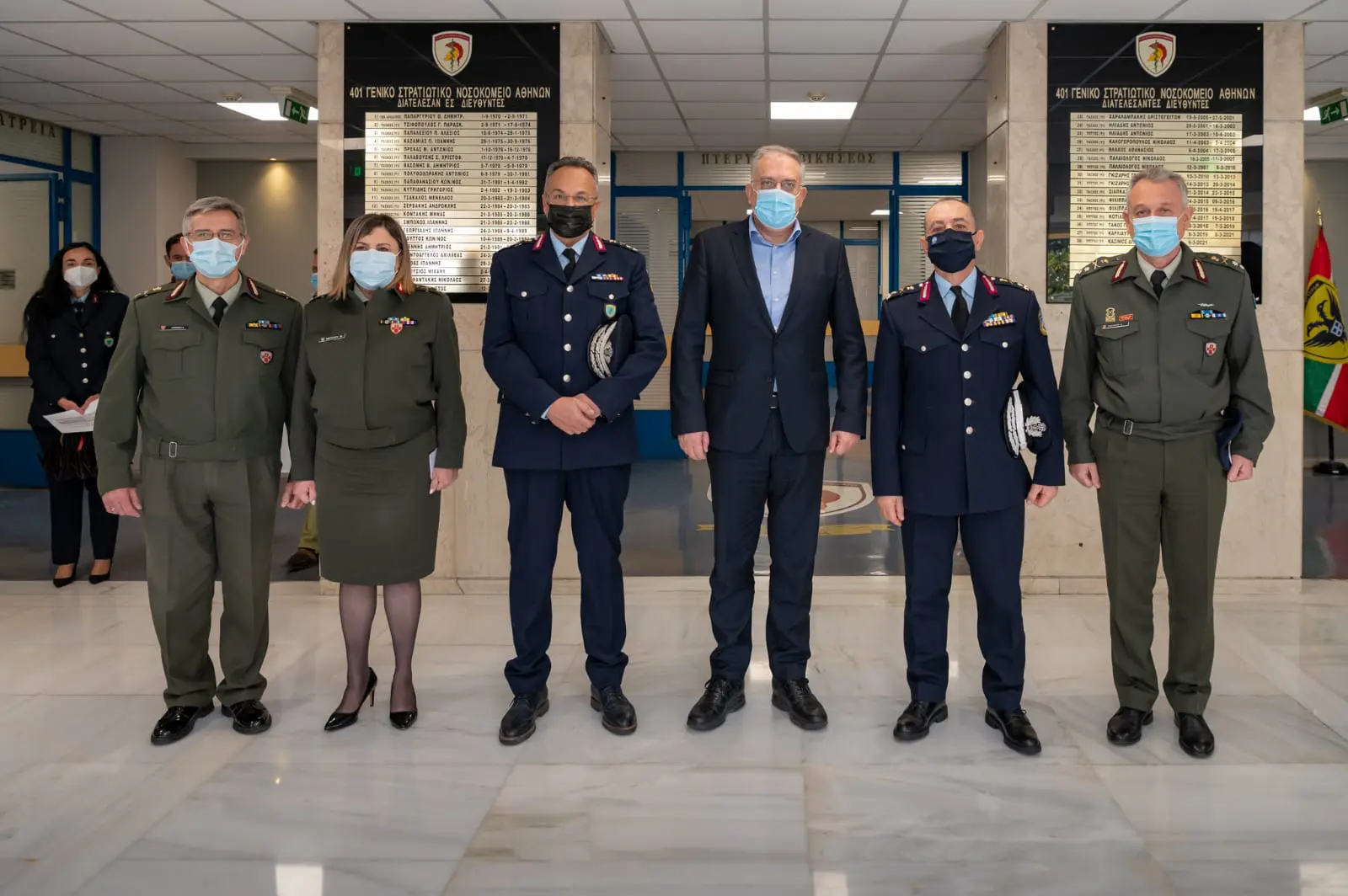 Τον Υπουργό υποδέχθηκε ο Διευθυντής του 401 Γενικού Στρατιωτικού Νοσοκομείου Αθηνών, Υποστράτηγος (ΥΓ) Δημήτριος Κασίμος και η Διευθύντριατης Νοσηλευτικής Υπηρεσίας του Νοσοκομείου, Ταξίαρχος (ΥΝ) Μαρία Μήτσιου,καθώς και μέλη της διοίκησης και προσωπικό του νοσοκομείου.