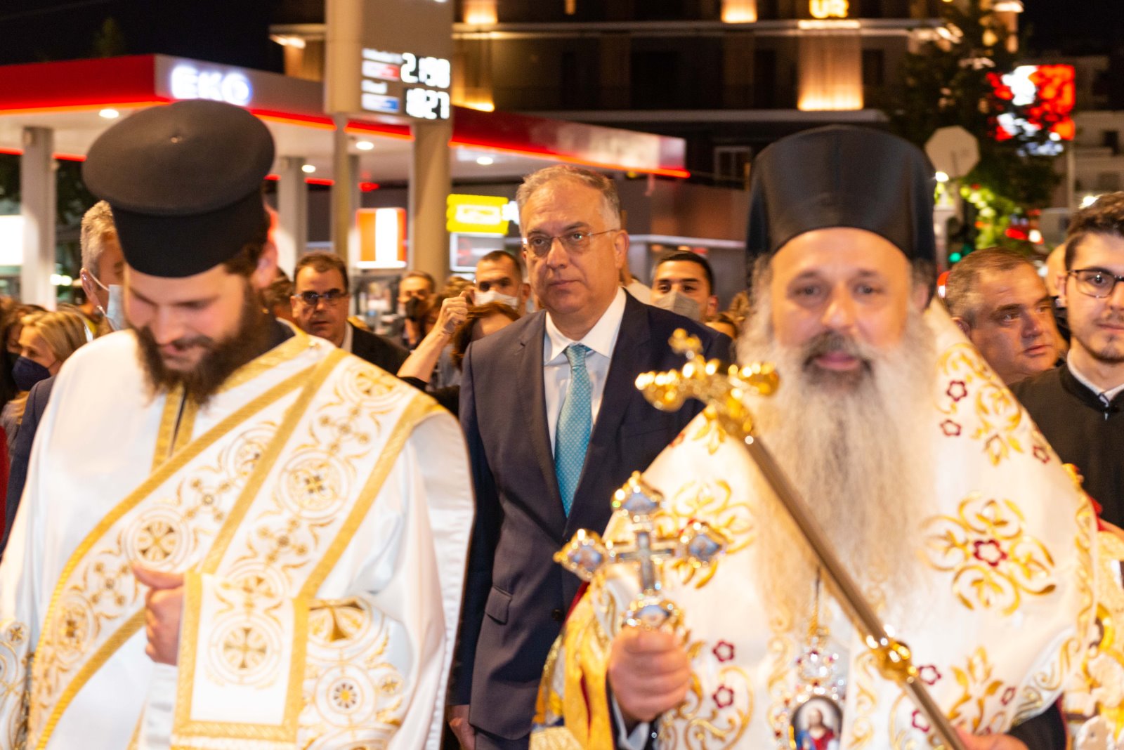 Ο κ. Θεοδωρικάκος ακολούθησε στη συνέχεια τη λιτανευτική πομπή του Ιερού λειψάνου της Αγίας Ελένης και της εικόνας των Ισαποστόλων Κωνσταντίνου και Ελένης, που πραγματοποιήθηκε με τη συμμετοχή στρατιωτικών αγημάτων, της φιλαρμονικής ορχήστρας Γλυφάδας, του Δημάρχου Γλυφάδας Γιώργου Παπανικολάου, δημοτικών συμβούλων και φορέων της πόλης.