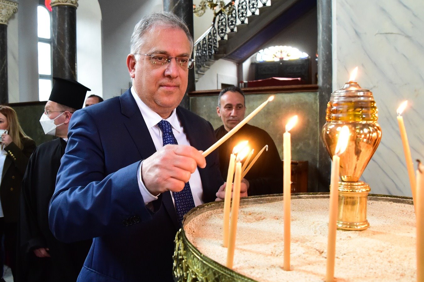 Ο Υπουργός Προστασίας του Πολίτη Τάκης Θεοδωρικάκος συναντήθηκε κατά τη διάρκεια της επίσκεψής του στην Κωνσταντινούπολη με μέλη της Ελληνικής κοινότητας. Σε ανάρτηση του στα social media ο Υπουργός αναφέρει: «Πριν αναχωρήσω από την Κωνσταντινούπολη, είχα τη χαρά να συναντήσω Έλληνες της Πόλης, στο προαύλιο του ναού Παμμεγίστων Ταξιαρχών όπου κάθε χρόνο η Κοινότητα Μεγάλου Ρεύματος – αυτού του ιστορικού χωριού του Βοσπόρου- οργανώνει την ομαδική προετοιμασία των Πασχαλινών εθίμων. Είχα την ηθική υποχρέωση να βρεθώ δίπλα τους! Ξεναγήθηκα στο ναό, μίλησα με τους εκπρόσωπους των Ρωμαίικων Κοινοτήτων Κωνσταντινούπολης και τους εξέφρασα το συνεχές κι έμπρακτο ενδιαφέρον της ελληνικής πολιτείας. Το επιθυμούν, το χρειάζονται αυτό το ενδιαφέρον και το εξέφρασαν ευθαρσώς μαζί με τη χαρά τους για την πρώτη επίσκεψη Έλληνα υπουργού Προστασίας του Πολίτη μετά από πολλά χρόνια. Οι ομογενείς της Πόλης, υπό δύσκολες -συχνά- συνθήκες και με μνήμες που κρατούν το πάθος τους άσβεστο, συνεχίζουν με αξιοθαύμαστο ζήλο να τηρούν τα ήθη και τα έθιμα της Ελληνορθόδοξης παράδοσης! Επιμένουν να ζουν στις πατρογονικές εστίες, θυμίζοντάς μας αυτά που δεν πρέπει να ξεχάσουμε ποτέ. Είναι συγκινητικοί! Τους εύχομαι υγεία και δύναμη. Καλή Ανάσταση, καλό Πάσχα!»