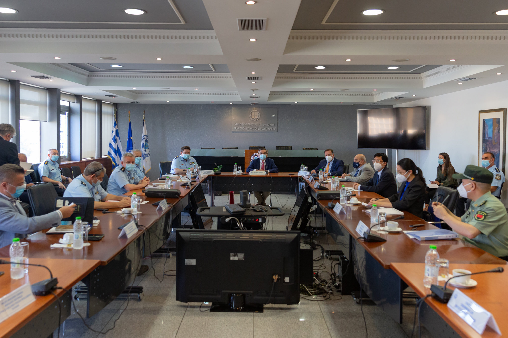 Στη σύσκεψη από την πλευρά της Ελληνικής Αστυνομίας συμμετείχε ο Αρχηγός Αντιστράτηγος Μιχάλης Καραμαλάκης και υψηλόβαθμοι αξιωματικοί ενώ από την Κινεζική ο ακόλουθος Άμυνας και αξιωματούχοι της πρεσβείας Αθηνών.